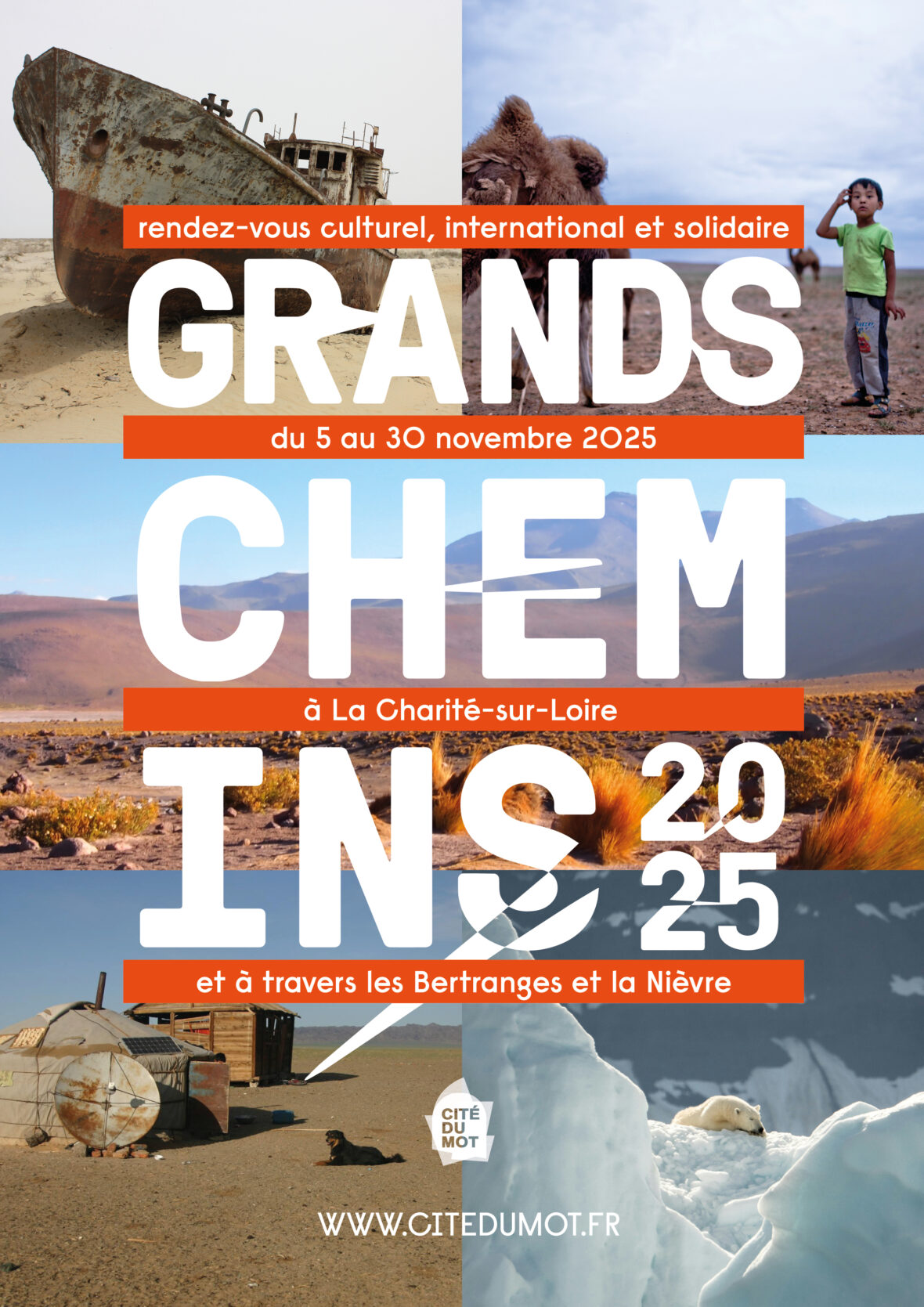Curiosité, accueil, partage sont les mots-clés de GRANDS CHEMINS, le grand rendez-vous culturel, international et solidaire de novembre dans la Nièvre. Chaque année une nouvelle destination nous invite à découvrir des cultures d’ailleurs et à réfléchir autrement aux grands enjeux communs de notre planète. En 2025, nous partons vers les déserts : lieux de vide …