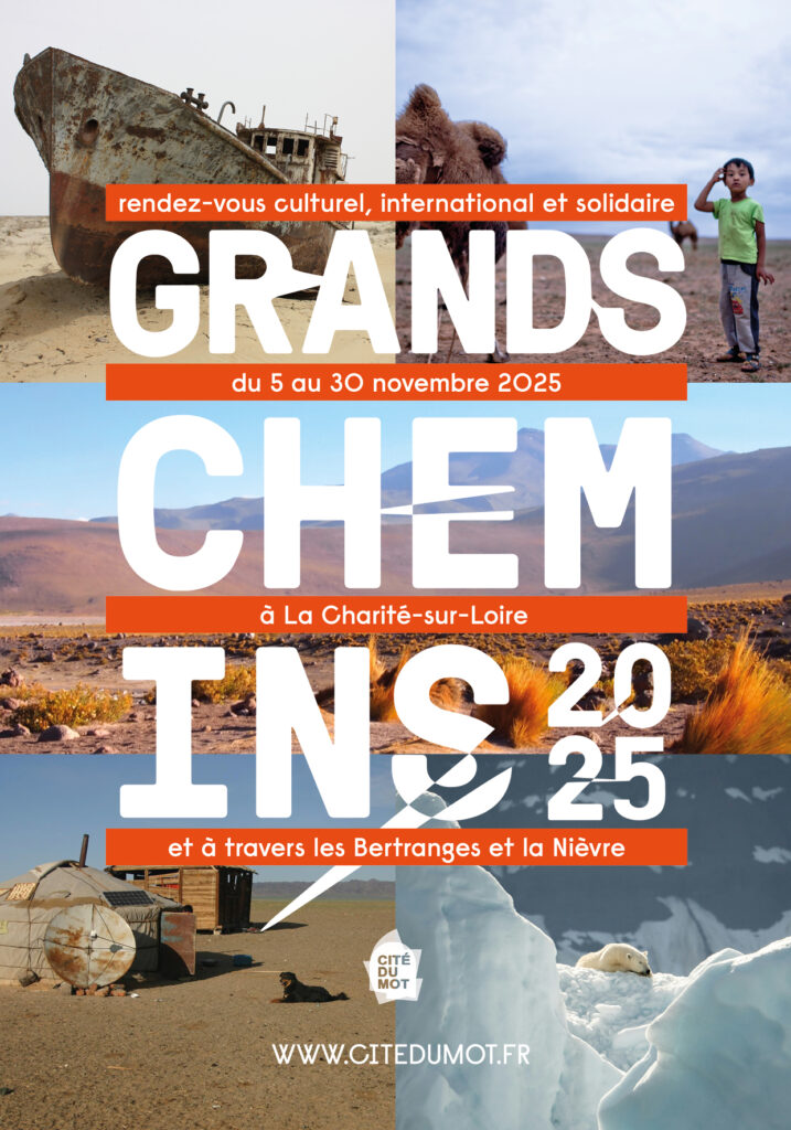 GRANDS CHEMINS est une initiative de la Cité du Mot en collaboration avec l’espace Socio- Culturel La Pépinière et le Centre d’accueil pour demandeurs d’asile de La Charité (CADA). Elle s’inscrit aussi, aux côtés de l’association Bourgogne-Franche-Comté International, dans la dynamique du FESTIVAL DES SOLIDARITÉS qui s’attache à promouvoir et célébrer une solidarité ouverte au monde et aux autres.