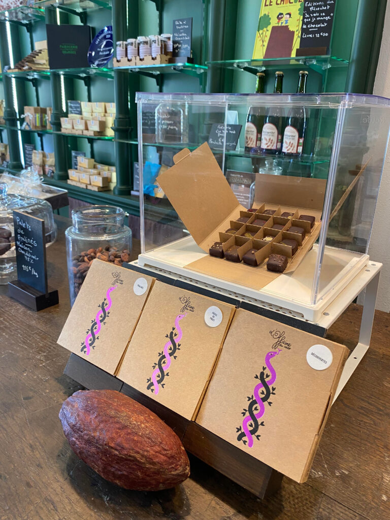 L’Officine du Cacao est née de la rencontre entre Claire Tabbagh, diplômée de l’école Ducasse, et un immeuble remarquable ayant abrité quatre générations d’une famille de pharmaciens à la Charité-sur-Loire. Entre Claire et le chocolat, c’est une histoire de gourmandise et d’artisanat ; travailler de ses mains une matière noble. La fève de cacao se façonne comme les vignes d’un terroir ou encore le grès tourné sur ce territoire du Val de Loire. Ma matière chocolat, labellisée « La Belle Nièvre », est entièrement fabriquée à l’Officine du Cacao. Je travaille à partir de fèves de cacao rigoureusement sélectionnées par origine, selon la méthode « Bean to Bar » : torréfaction douce, pré-broyage, broyage, conchage et maturation afin de sublimer tous les arômes. Vous trouverez à l’Officine du Cacao une large gamme de produits artisanaux : tablettes de chocolat, bonbons de chocolat, plaques de chocolat à la casse, cookies allergic friendly, pâte à tartiner, orangettes, gingembrettes, tisanes, dukkah cacao, grué, chocolat à patisser. Alors rendez-vous à l’Atelier-Boutique de l’Officine du Cacao à la Charité-sur-Loire dans la Nièvre. Ouvert le mercredi et jeudi de 15h à 19h00, vendredi et samedi de 9h30 à 12h30 et 15h à 19h00